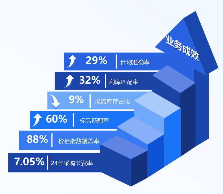 智控采購域項目聚焦“提效率、強合規、降庫存”三大核心目標,構建了全新的中煤智慧供應鏈平臺,推動采購供應鏈全業務全面線上化,推進供應鏈業務公開、過程可控,2024年采購全流程階段提效21.79%,采購節資率7.05%;統建采存一體化系統,大力推行儲備定額、多維利庫、批次管理機制,突破采購計劃與庫存之間的阻隔,計劃準確率提升29%;創新穿透式風險預警功能,形成提醒、預警、攔截等管控機制,合規風險降低60%。
